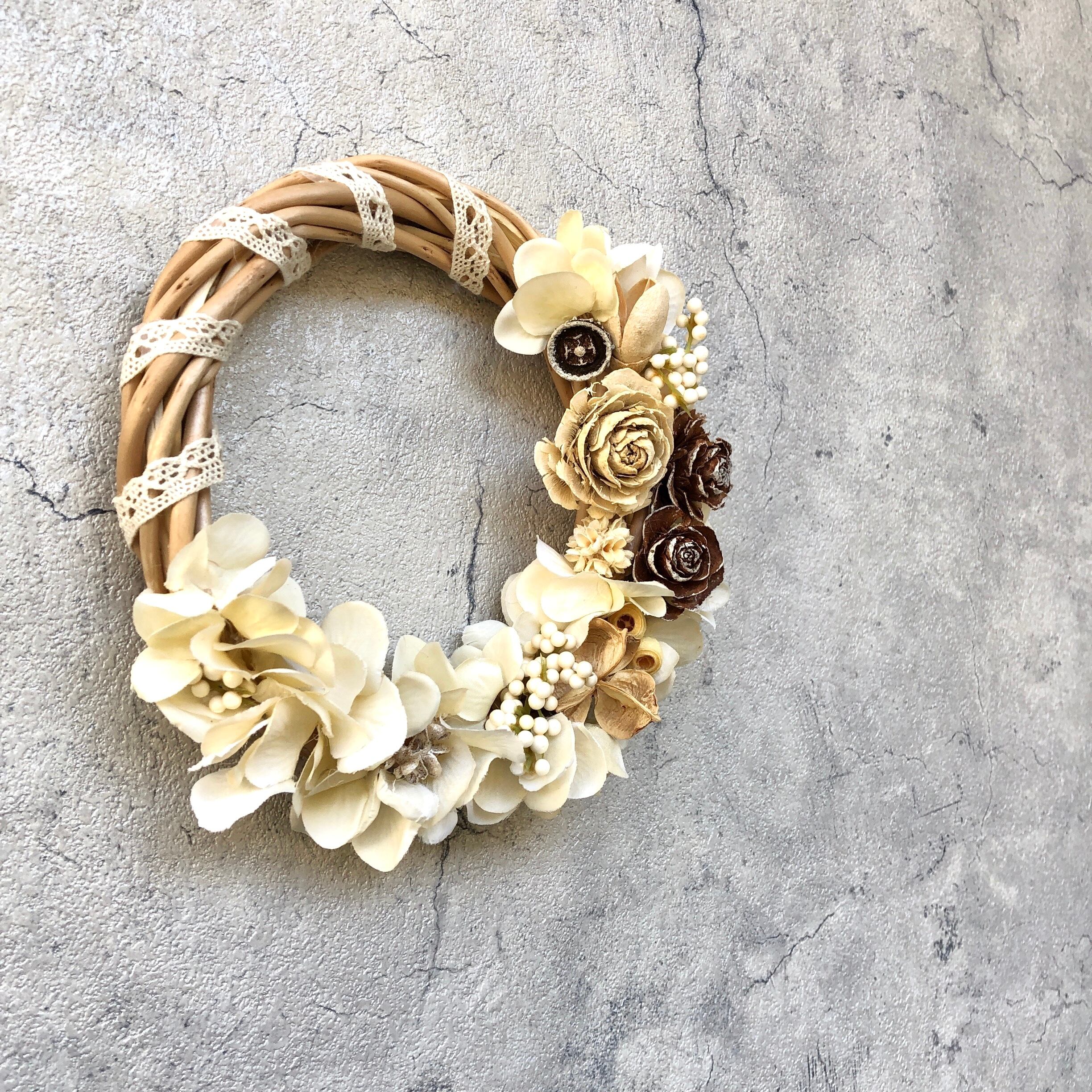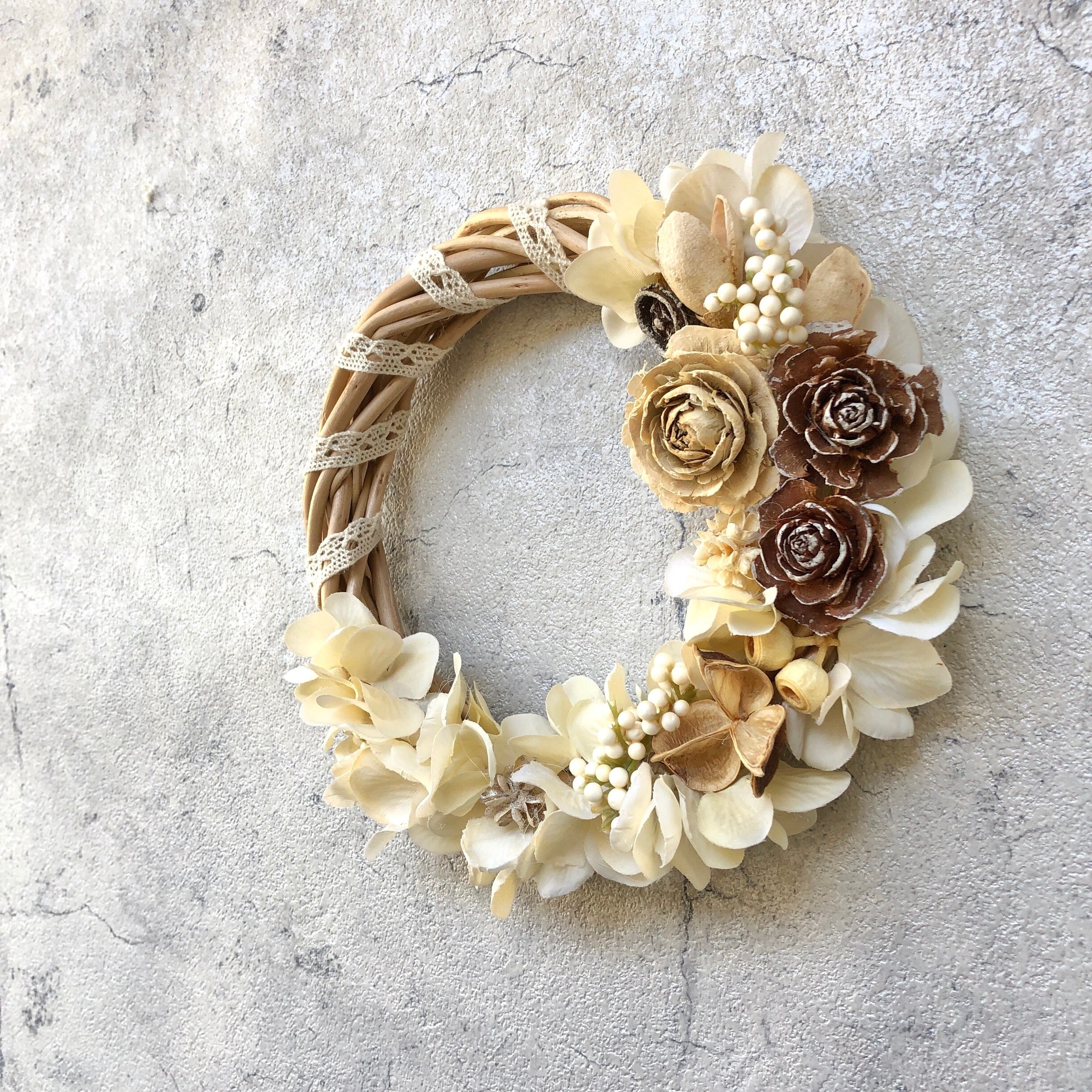 きなり色*シダローズのリース / ドライフラワー 造花リース アンティーク
