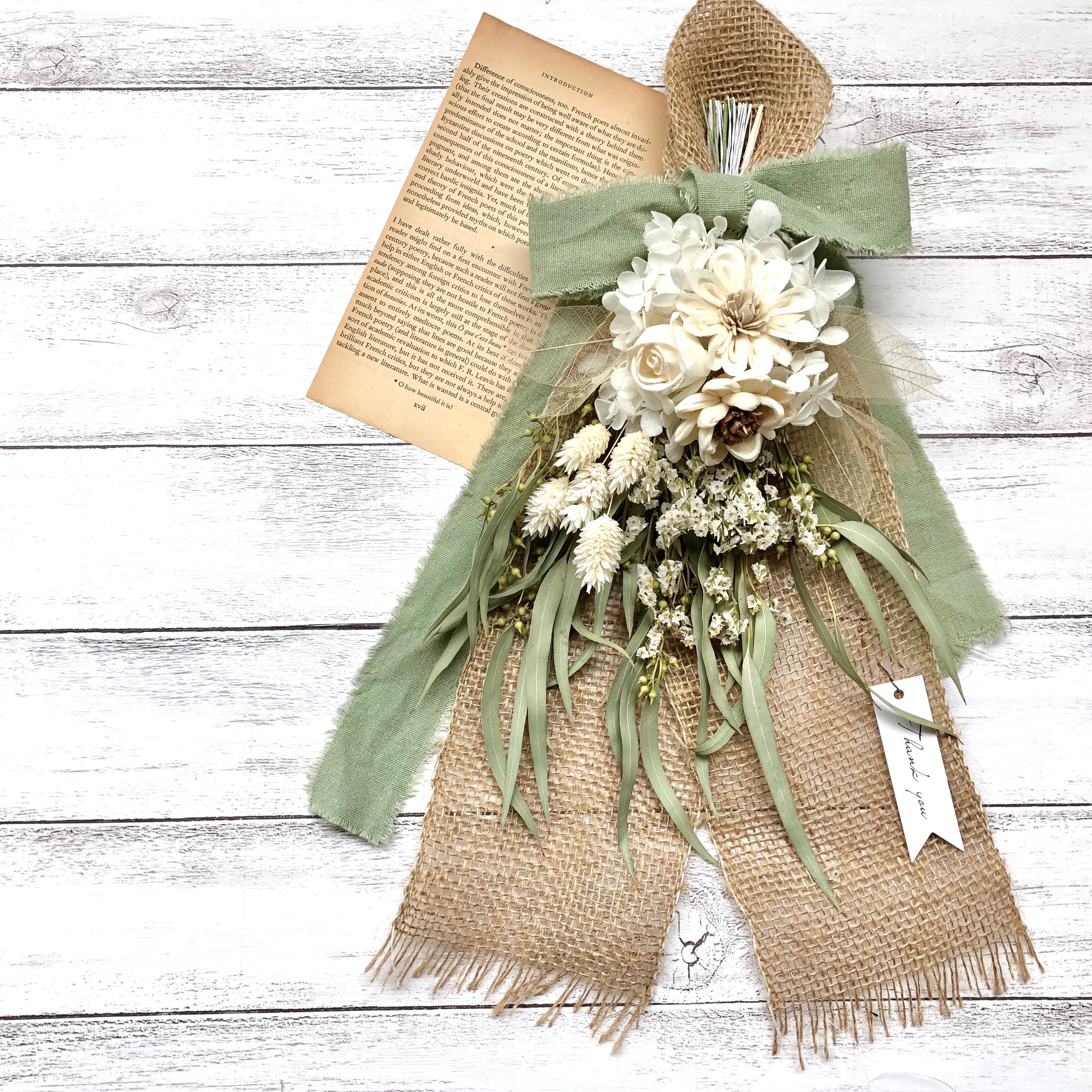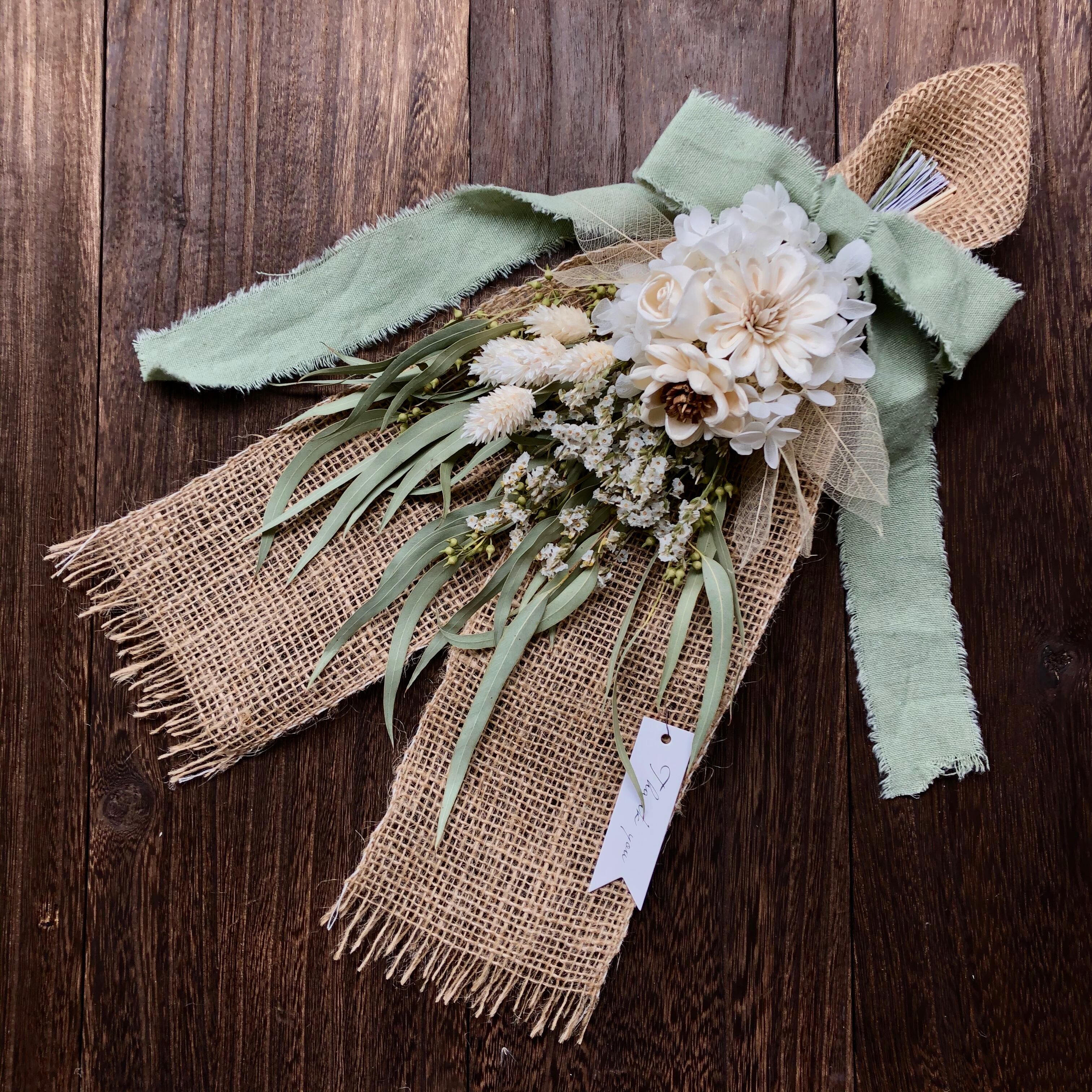 スワッグナチュラル グリーンリボン / ソラフラワー ホワイト&グリーンスワッグ