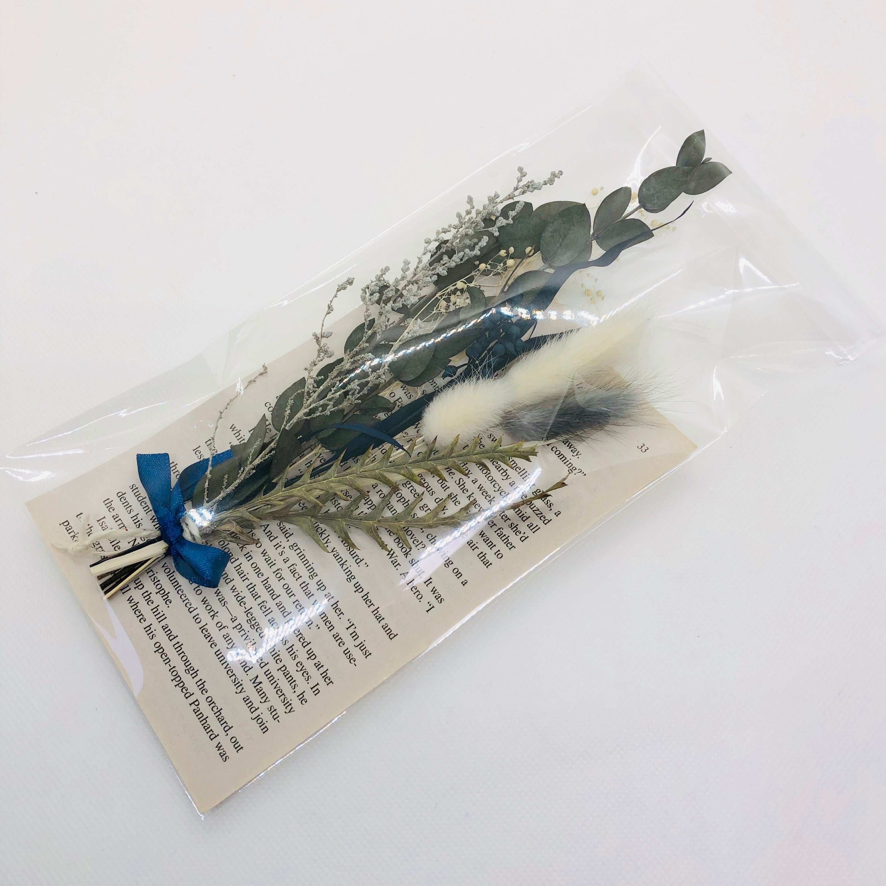 花材:ユーカリ、カスミソウ、ラスカス、ボアプランツ、グレビレア等8種