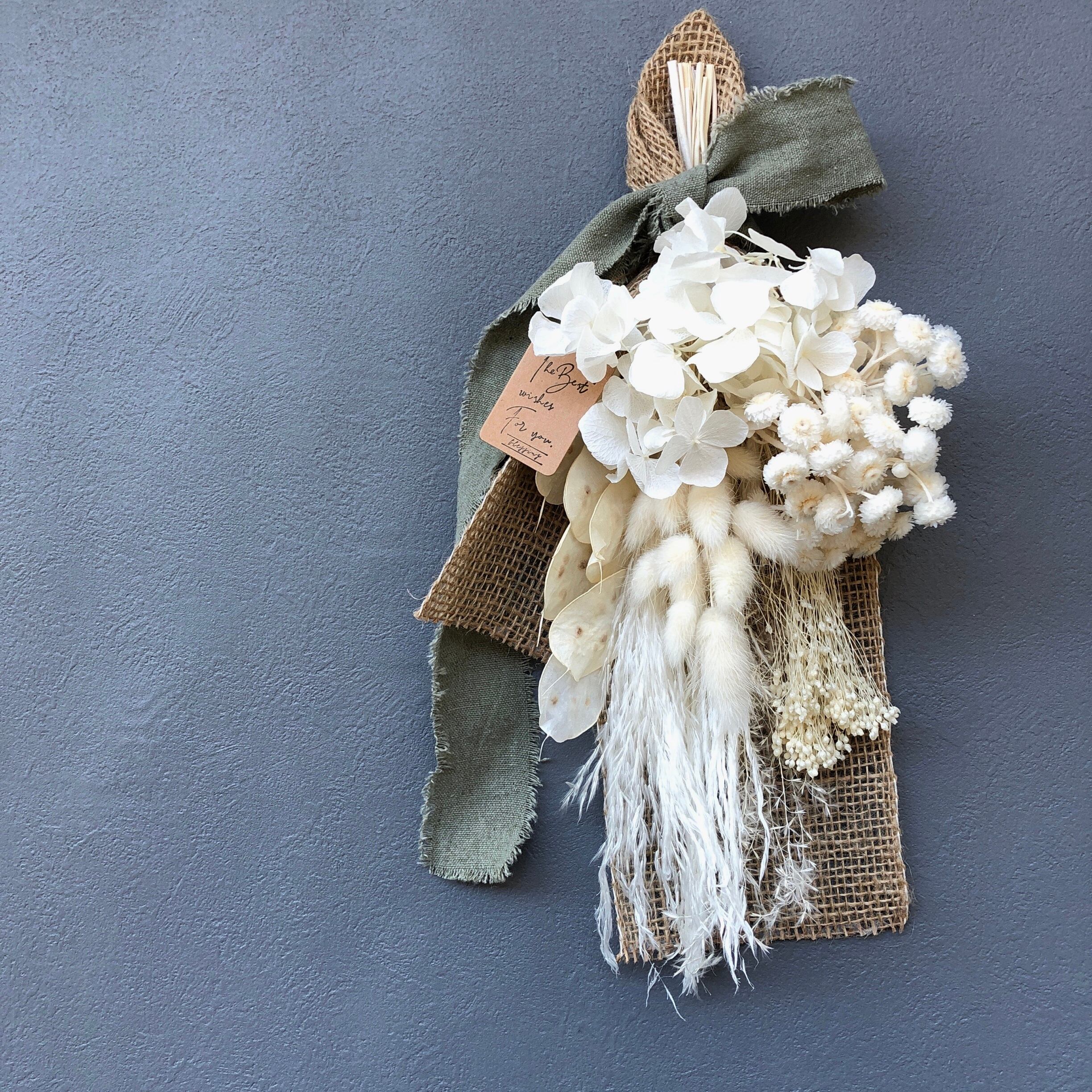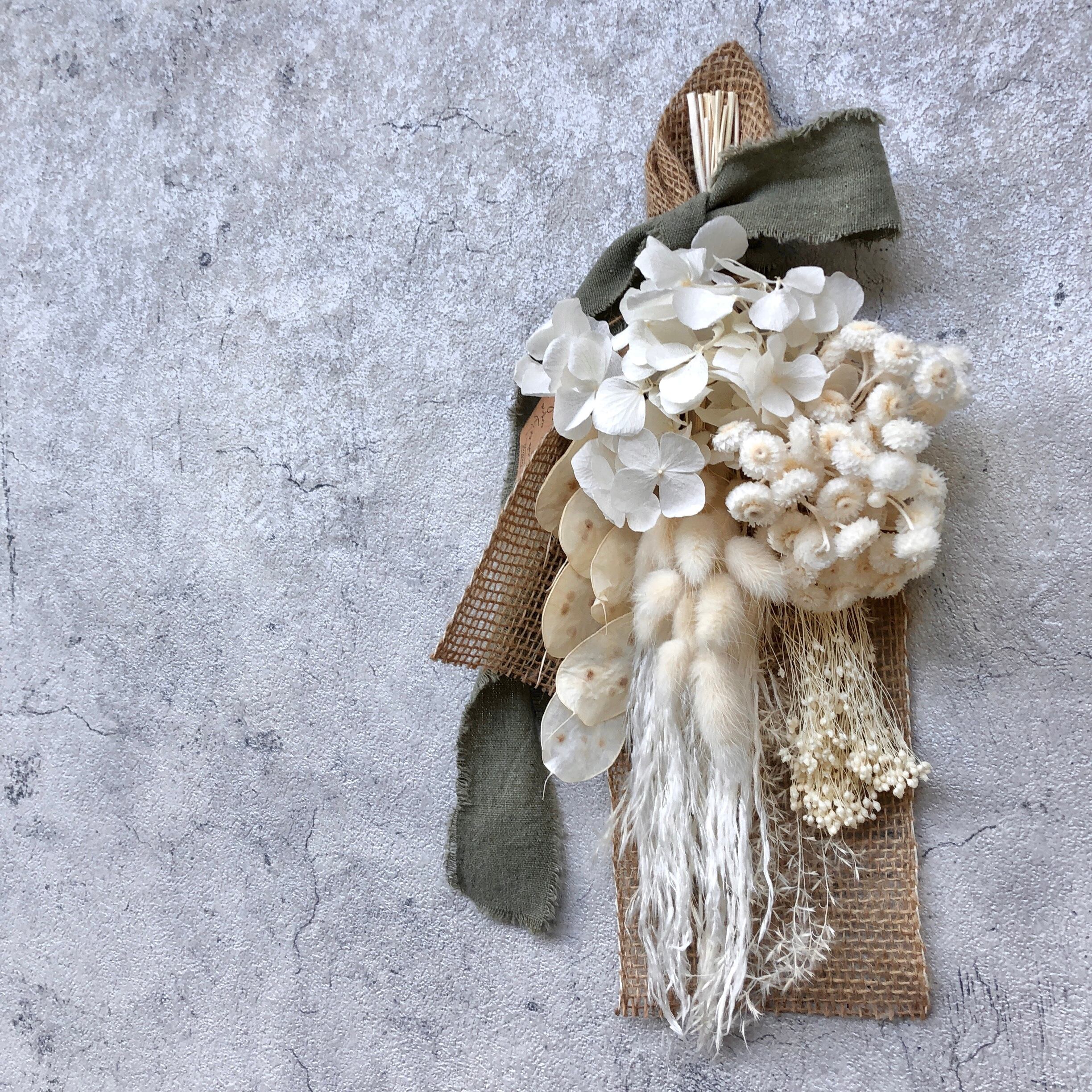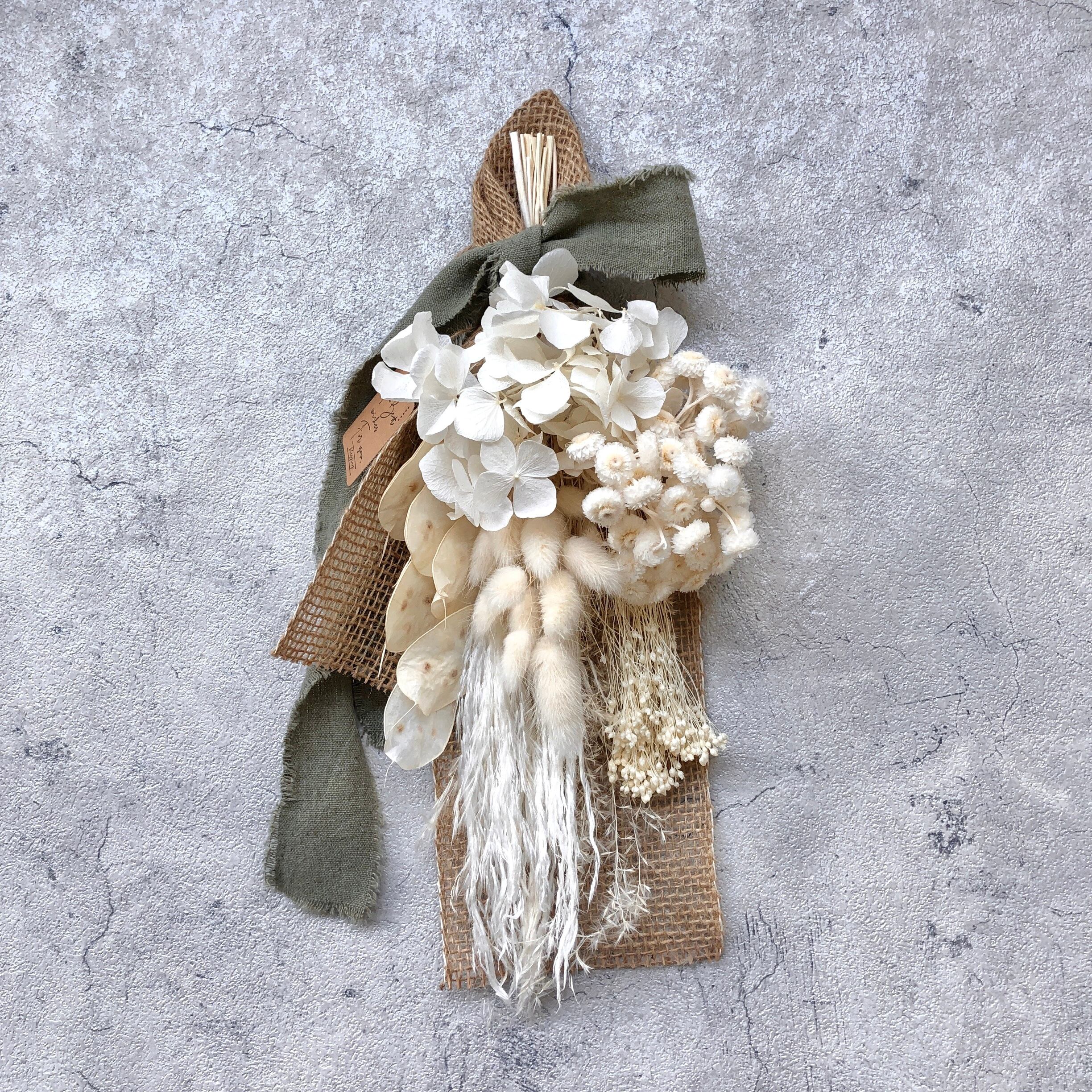 ホワイトにシックなカラーが映える、落ち着いた大人かわいいスワッグ♪
