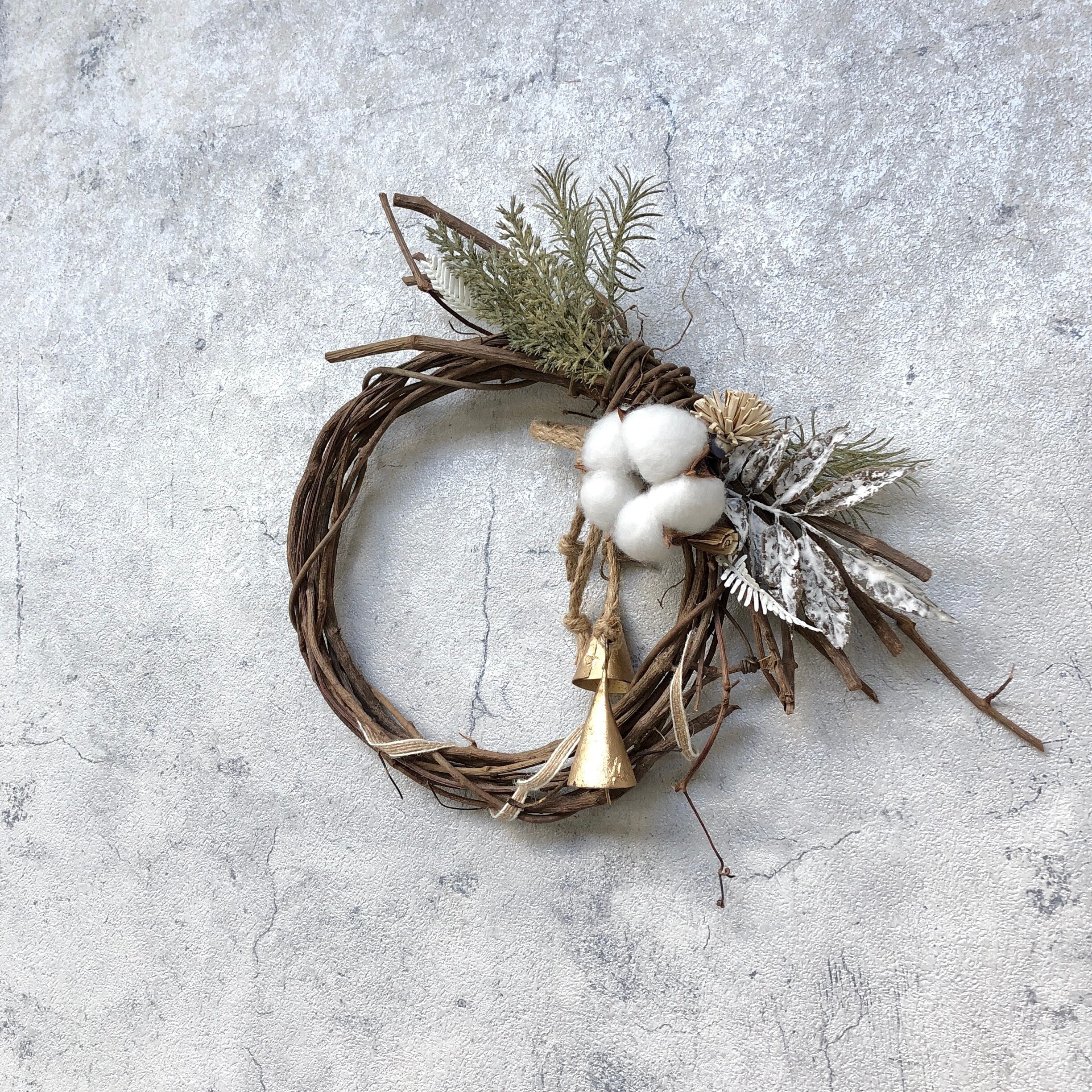 アンティークベル付 コットンフラワーリース / ウインターリース 造花リース ドアリース