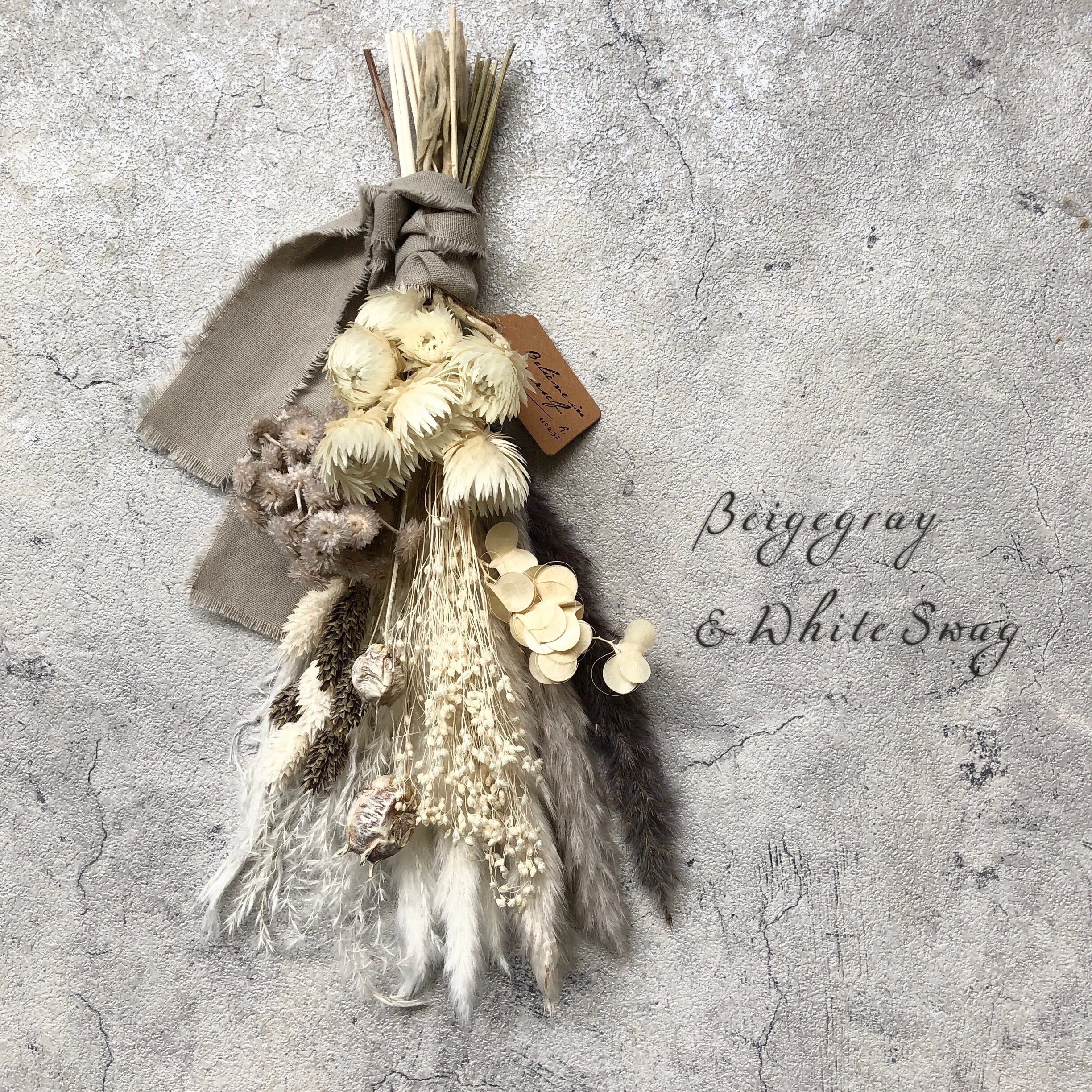 グレー&ホワイト*スワッグ グレージュリボン / プリザーブドフラワー ドライフラワー ブーケ