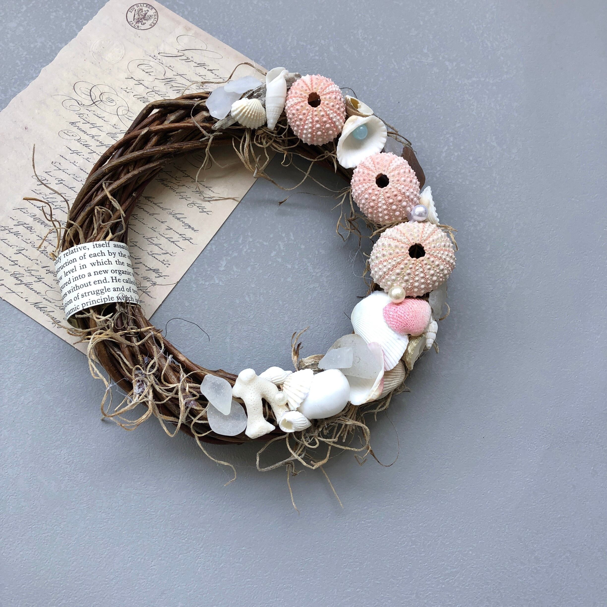 ピンクシーウーチン シェルリース B / 造花リース 貝殻 流木 ウニ殻 貝 サマー